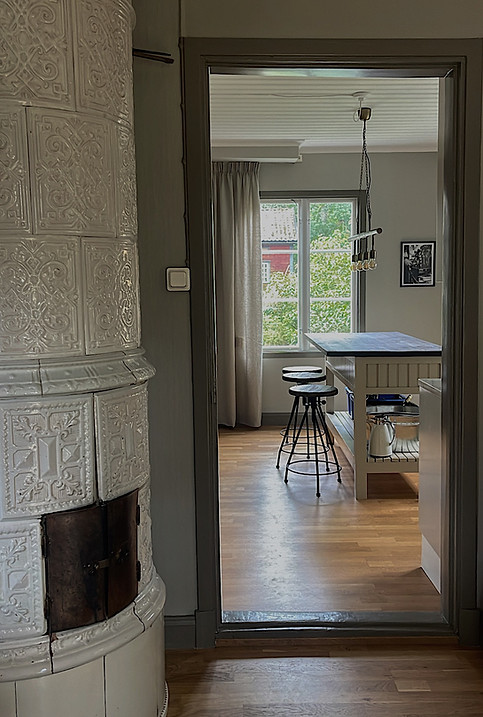 This client had bought a cottage with great land in the woods and wanted to bring in that feeling of a luxury New England cottage where he could escape from his work, so I took inspiration from Scotland and English mansions and brought that feeling into this home. I got moody more masculine furniture pieces with lots of wood and leather yet keeping it homey and cozy by combining them with fabrics in linen with earthy tones and softer inviting colors like warm greys and beige. I also decided to have all the trims painted in the same color throughout the house, which instantly feels more put together and luxurious. A custom bookcase around one of the windows and a custom kitchen island were also designed for them to have cozy breakfasts and bind the entire space together so it all felt well thought out.